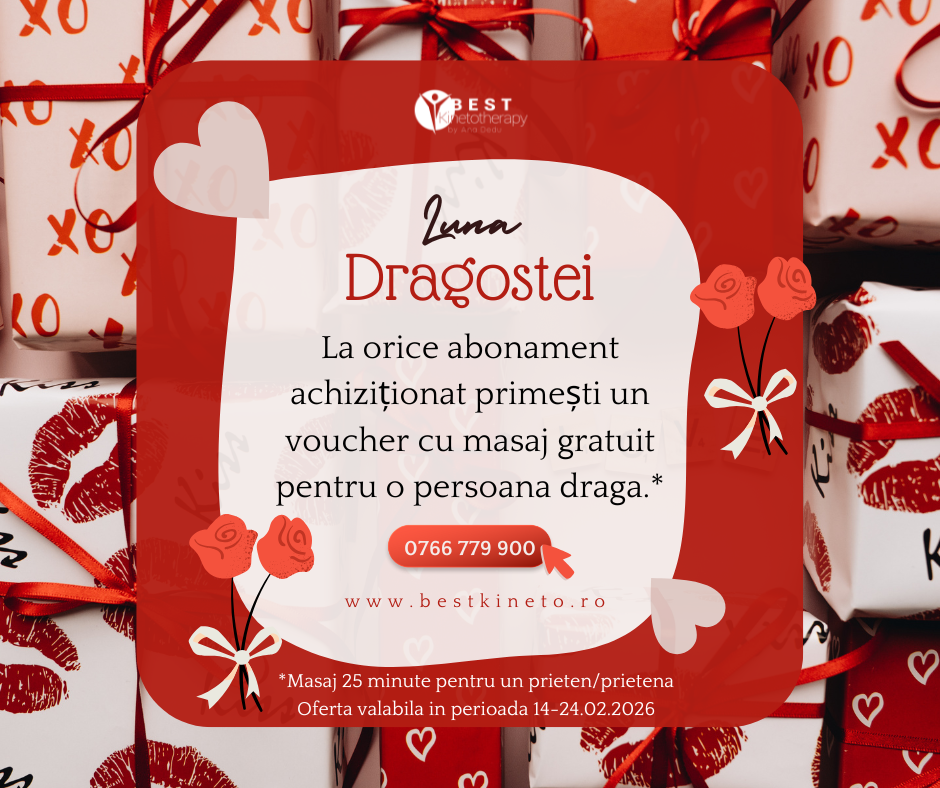 Achiziționează un abonament, in perioada 14-24.02.2026, la Best Kinetotherapy si primești un voucher cadou cu un masaj terapeutic de 25 minute pentru soțul/soția, iubitul/iubita sau prietenul sau prietena ta draga !
